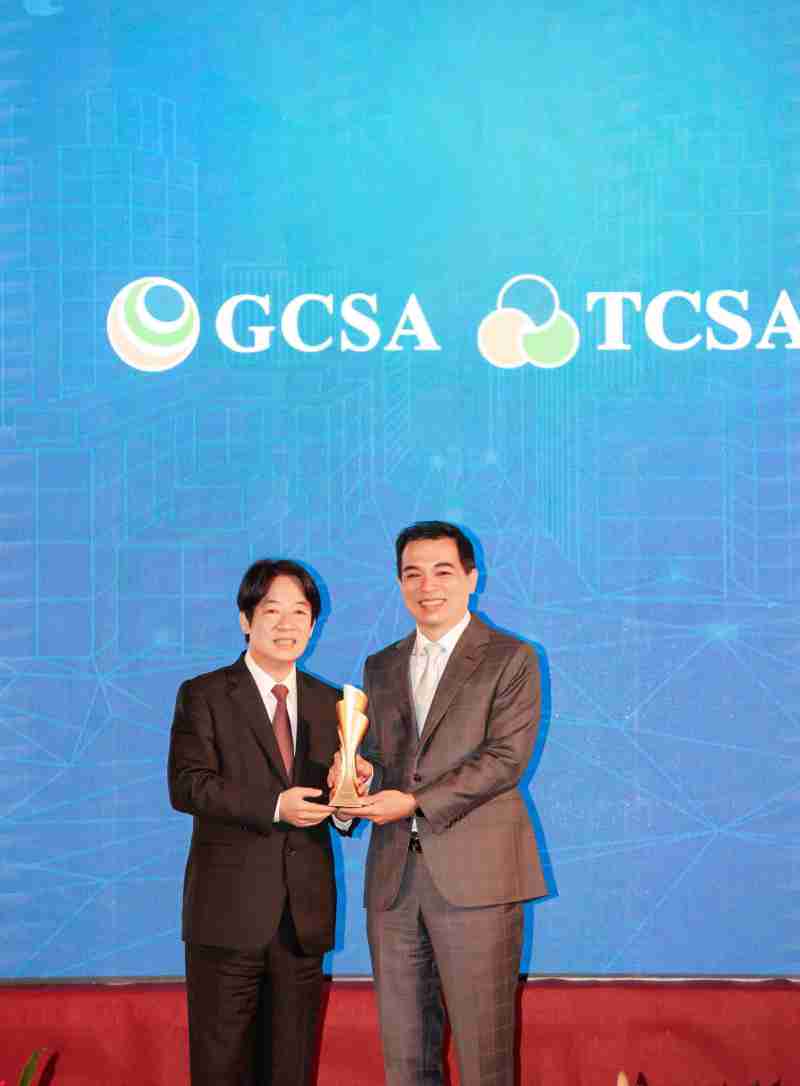 达全方位永续表现获全球永续奖及台湾永续奖肯定,,,由副总统赖清德颁奖 (左),,,,2121非凡总经理柯富仁 (右) 代表领奖