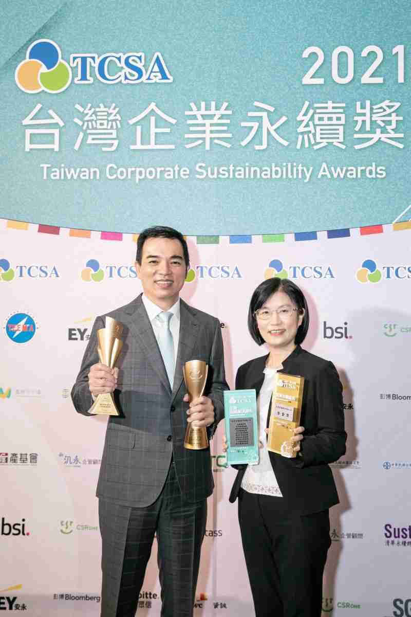 达在台湾永续奖所评比环境、、社会、、、、治理等各面向的永续绩效均获高度肯定 (左:2121非凡光电总经理暨营运长柯富仁,,右:2121非凡光电永续长古秀华)