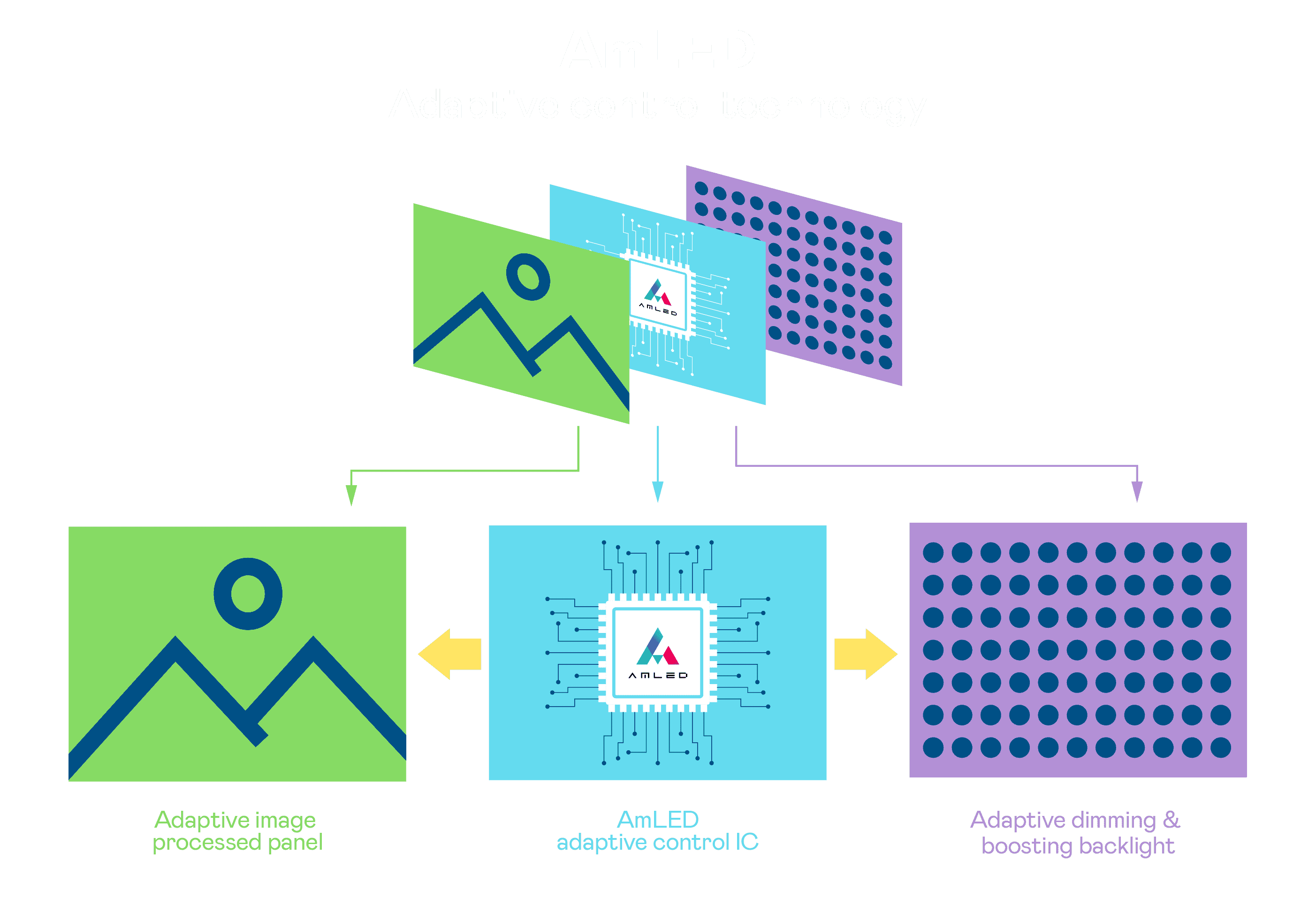 AmLED 具备更省电与低蓝光特性。。。。与一般的 LED 背光显示技术相比,,,,由于 AmLED 常时处于局部调光状态,,,其功耗仅有前者的 50% 左右,,,同时 AmLED 还具备低蓝光特性,,满足长时间使用的护眼需求。。。