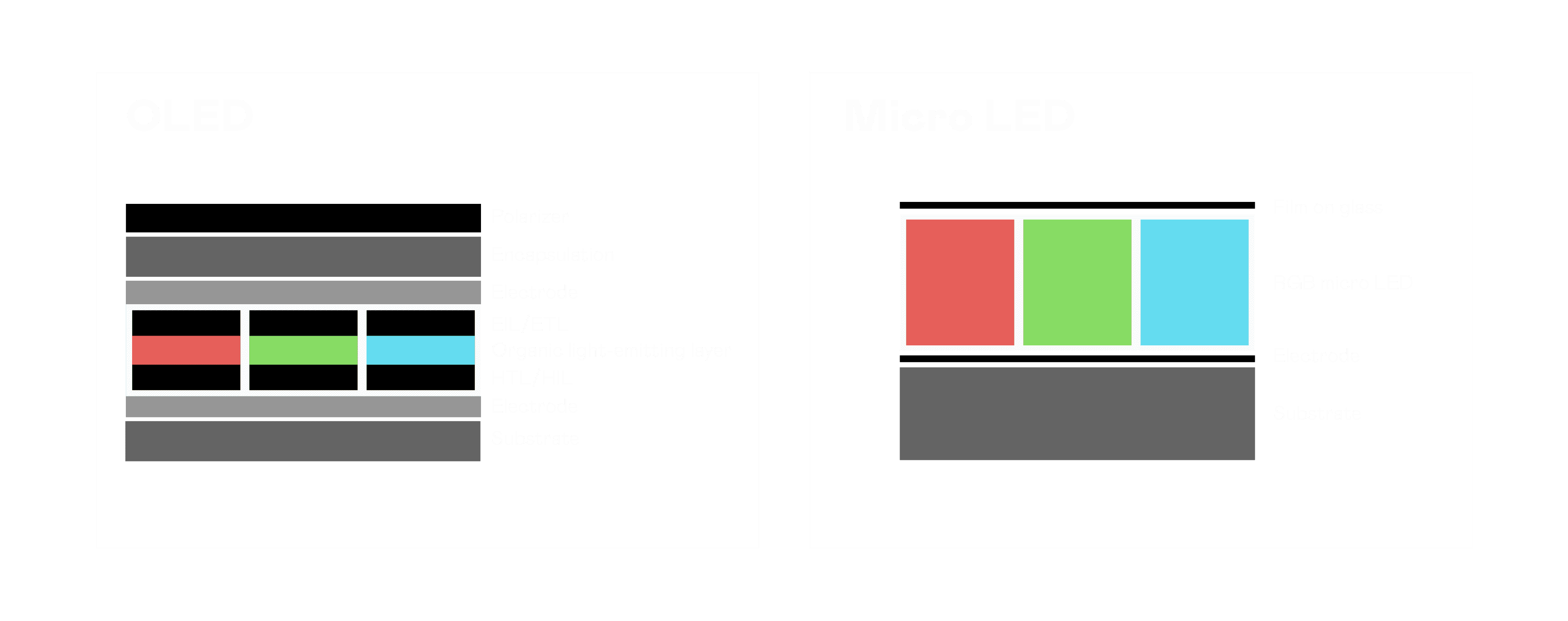 以 LED 做为显示画素,,,,可让 LED 的发光效率发挥到极致,,,,从而让显示器具备优异的亮度表现,,不论是在户外或室内,,,均具备出众的显示效果。。。同时,,与使用有机材料的 OLED 相比,,,LED 具备更稳定、、、、寿命更长的特性,,,不仅不会有画面烙印问题,,而且更不容易出现故障、、坏点。。